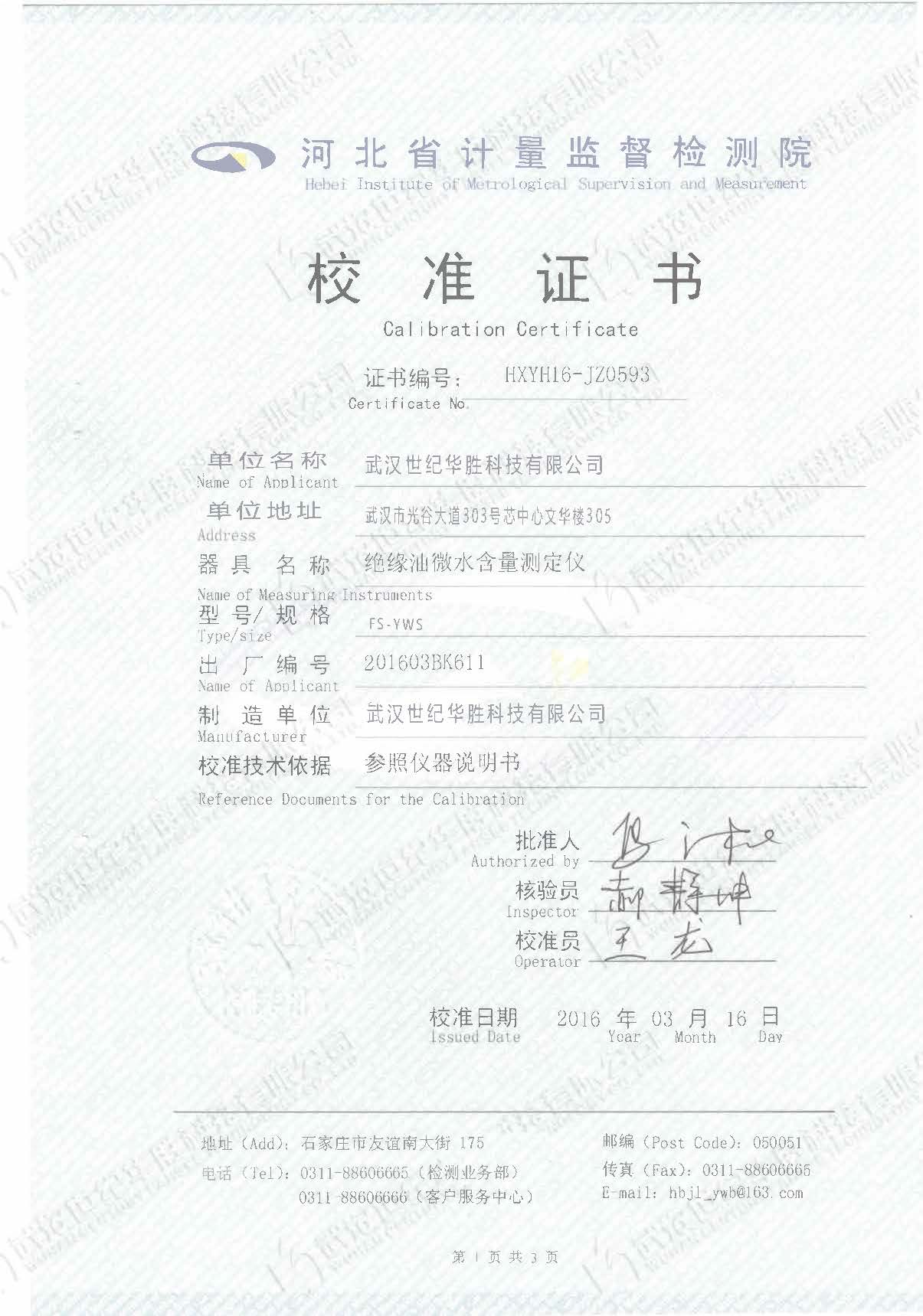 ? ? ? 2.?設備3年免費檢定或校準。